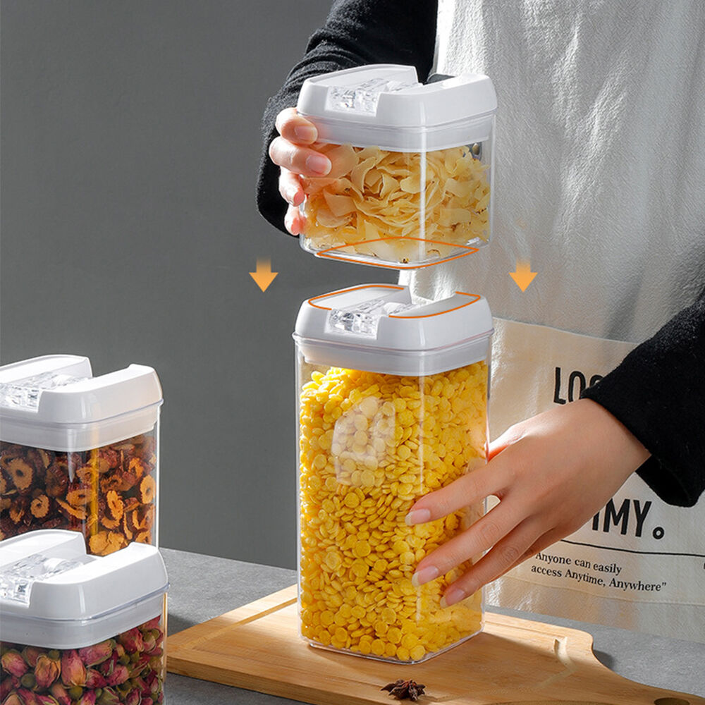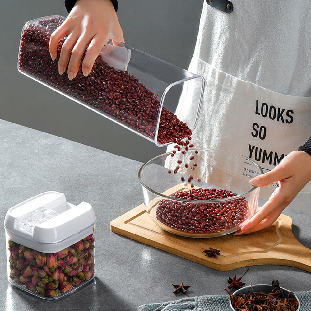 Stores whole grains (mung beans, soybeans, rice, etc.), dry goods (lily bulbs, dried radish, etc.), pasta, nuts, snacks, etc., with sealing, moisture-proof and insect-proof functions to extend food shelf life and keep the kitchen tidy.