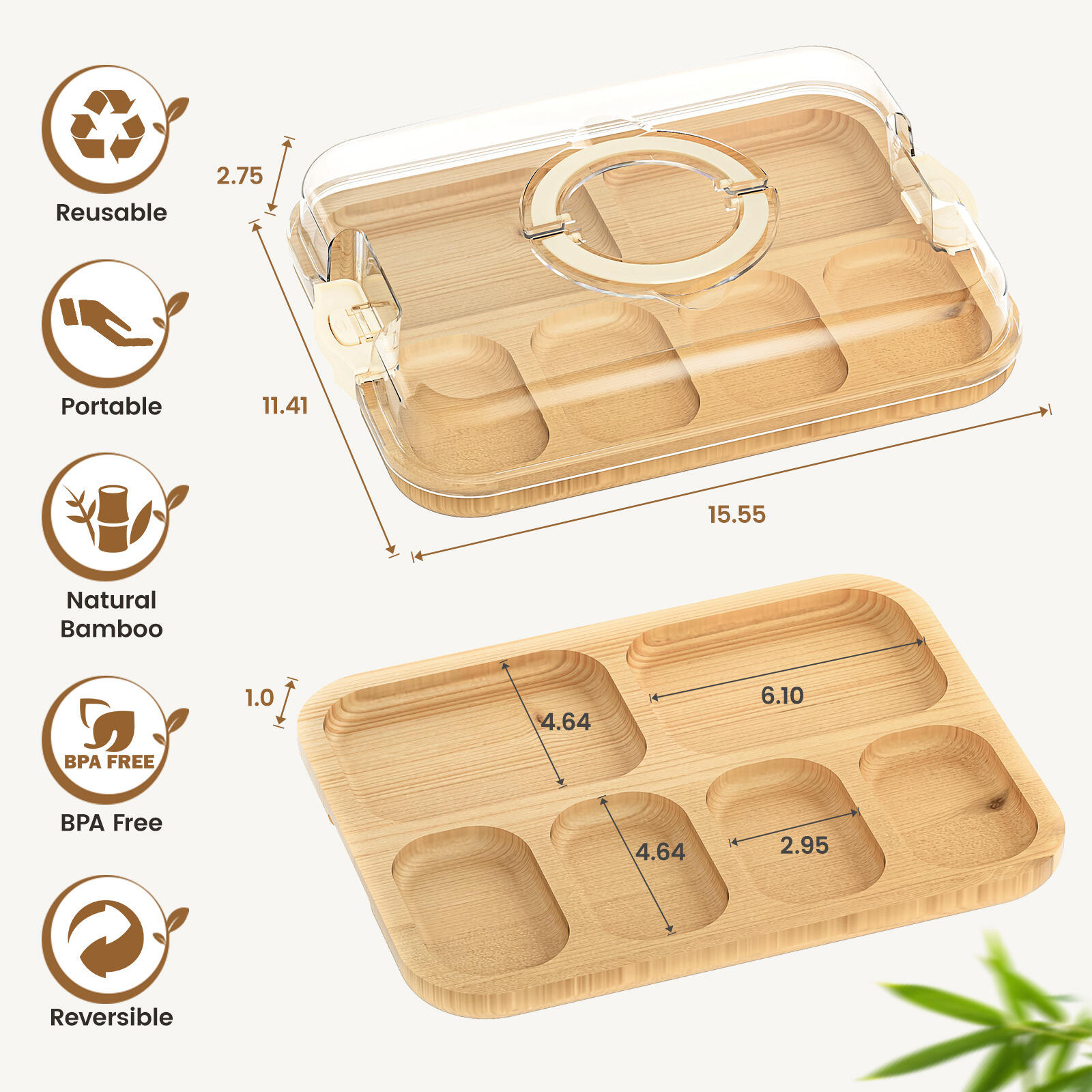 With the core product advantages of one-piece natural bamboo compartments, food-grade PET high-definition fresh-keeping lid, no redundant plastic structure, easy cleaning and storage, high-end and durable appearance, as well as stable supply chain, cost-effective quotes and perfect customization capabilities, we have become a reliable partner for e-commerce sellers, home brand owners, catering service providers and supermarkets in developing home storage, picnic supplies, party plating and other categories, helping customers seize market opportunities quickly!