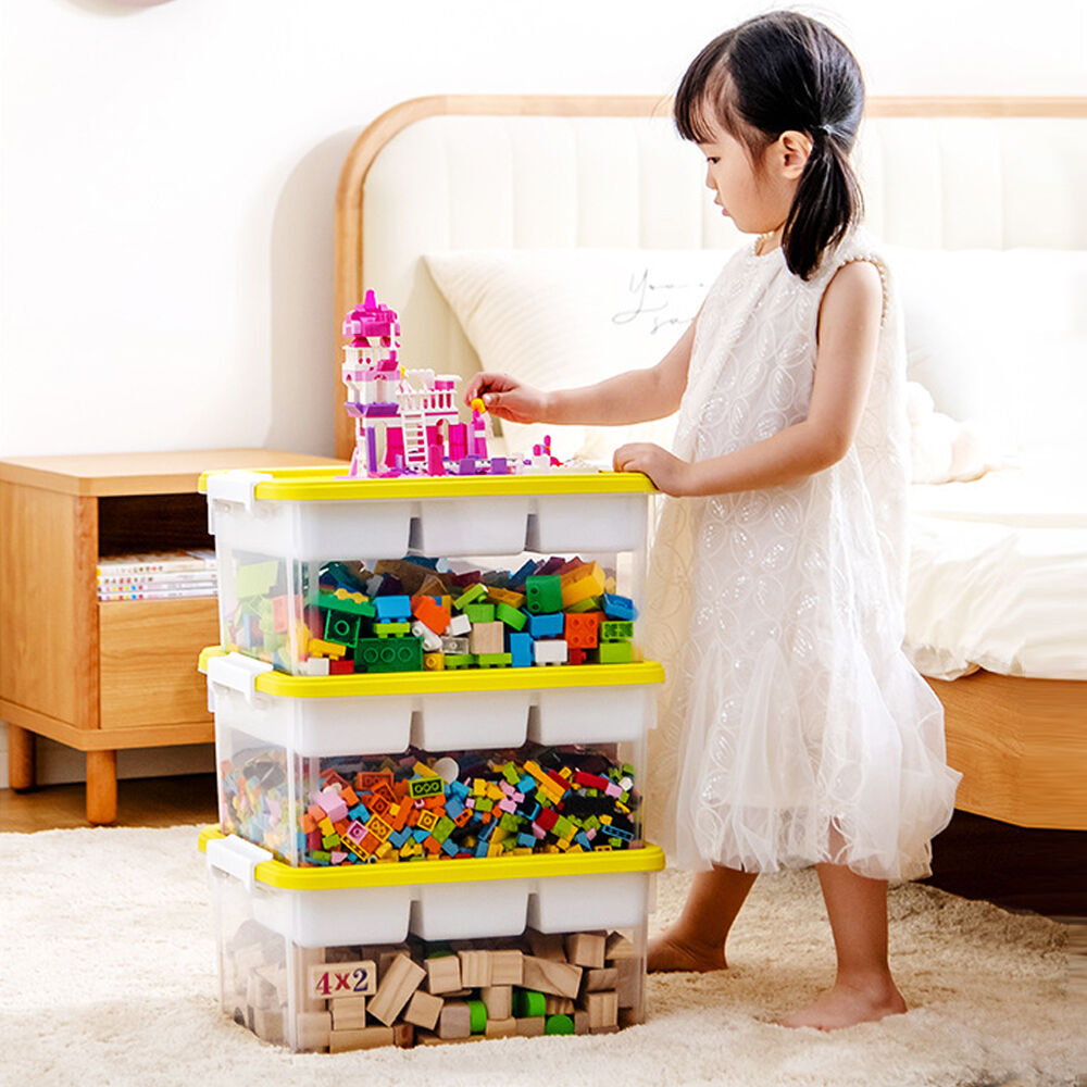 3、Bedroom Nightstand Casual Play Scene:For kids who want to play with blocks before bedtime, there’s no need to move tables or chairs. Just carry the bin to the bedside, build small models on the lid play table, then close the bin and store it under the bed or beside the nightstand when tired. It takes up no bedroom space and prevents scattered pieces from disturbing rest.