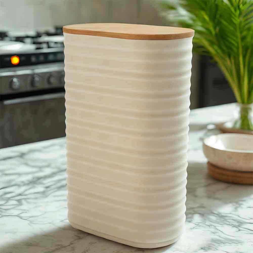 An elegant storage solution for modern homes lies in this set of bamboo-lidded textured storage jars that blend aesthetics, practicality, and warmth. Crafted from eco-friendly plastic paired with natural bamboo airtight lids, the unique corrugated exterior combines design flair with anti-slip functionality.