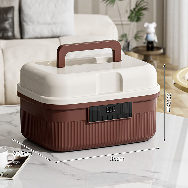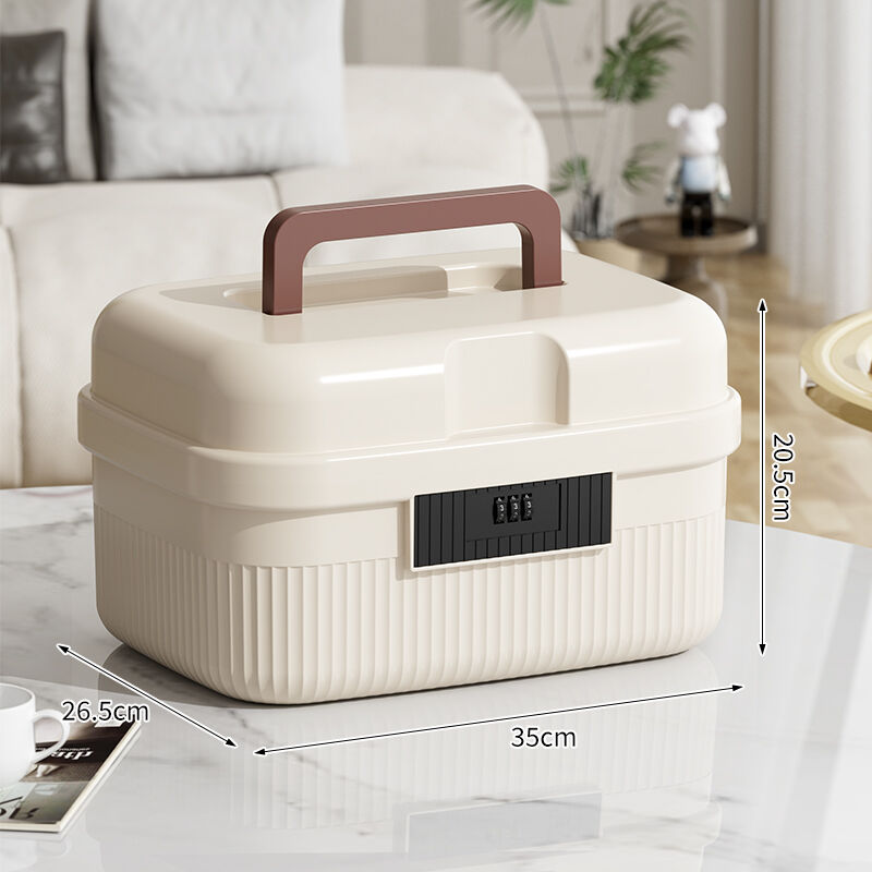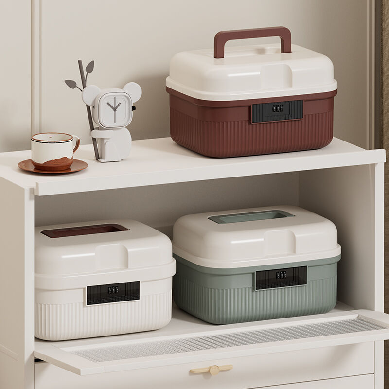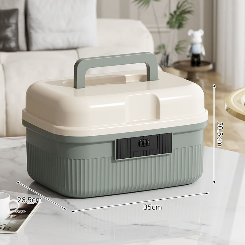 二層式コンパートメントを備えたコストパフォーマンスに優れた収納ボックスで、携帯性とスタッキング可能なデザイン、3桁のダイヤル式組み合わせロック、防塵・防湿機能を備え、家庭用救急キット、書類、オフィス用途などにおけるプライバシー保護付き収納を実現します。