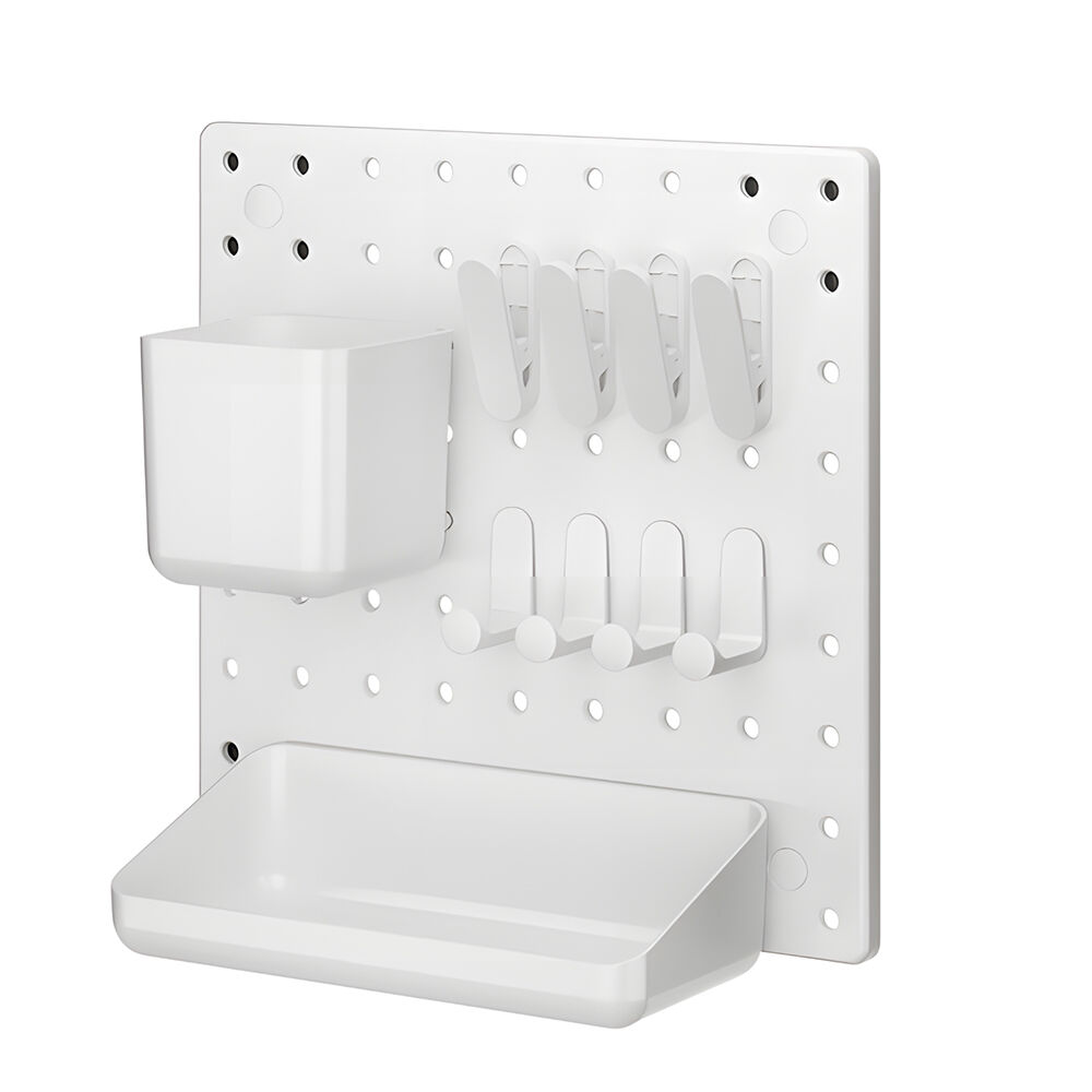 Efficient Vertical Space Utilization: The wall-mounted design transfers items from the countertop to the wall, releasing over 80% of countertop space. The 27cm square pegboard is compact and space-saving, suitable for small apartments and multi-scene walls.