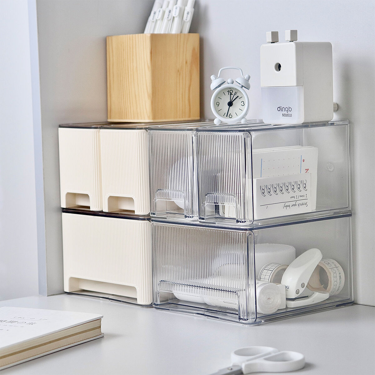- Study/home office area: Store hand account tools, stamps, tape, book bookmarks, etc. The modular combination can be flexibly adjusted according to the size of bookcases/desktops, making full use of the corner space of the study for a neat and beautiful look.