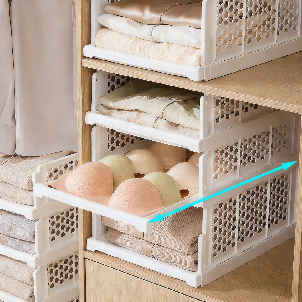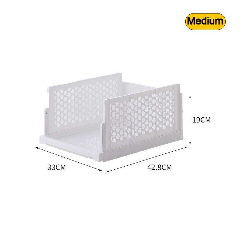 The PP material is eco-friendly and odor-free, shock-resistant, pressure-proof and highly tough; the breathable mesh design ensures ventilation and moisture resistance. Featuring an innovative groove stacking design, they stack stably without tipping over. Available in large/medium/small sizes, they enable layered storage of clothes, underwear, bedding and more, saying goodbye to clutter and boosting wardrobe space utilization by over 40%. With a tool-free, ready-to-place design, they require no tools, cause no damage to cabinets, are ready to use out of the box, and make clothing organization efficient and convenient.