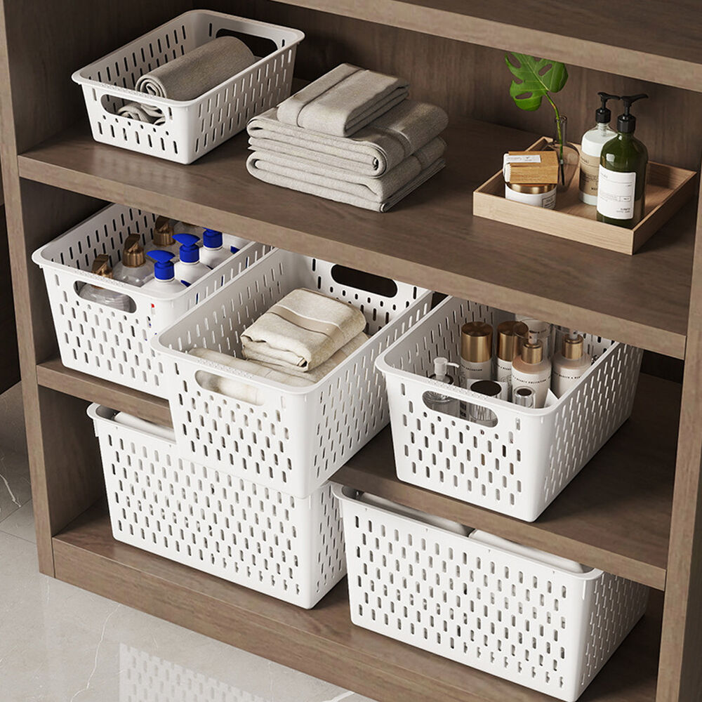An all-around storage solution for modern homes lies in this classification-friendly, practical, and high-quality plastic hollow-out storage basket. Crafted from premium eco-friendly PP material, it features a hollow-out breathable design combined with a convenient handle structure. Available in multiple specifications (including mini size for desktop small items, medium size for daily necessities storage, and large size for organizing clothes and sundries), it is stackable to save space. It fully utilizes vertical space in cabinets and corners, while the hollow-out design ensures breathability and moisture resistance, making home storage neat and efficient.