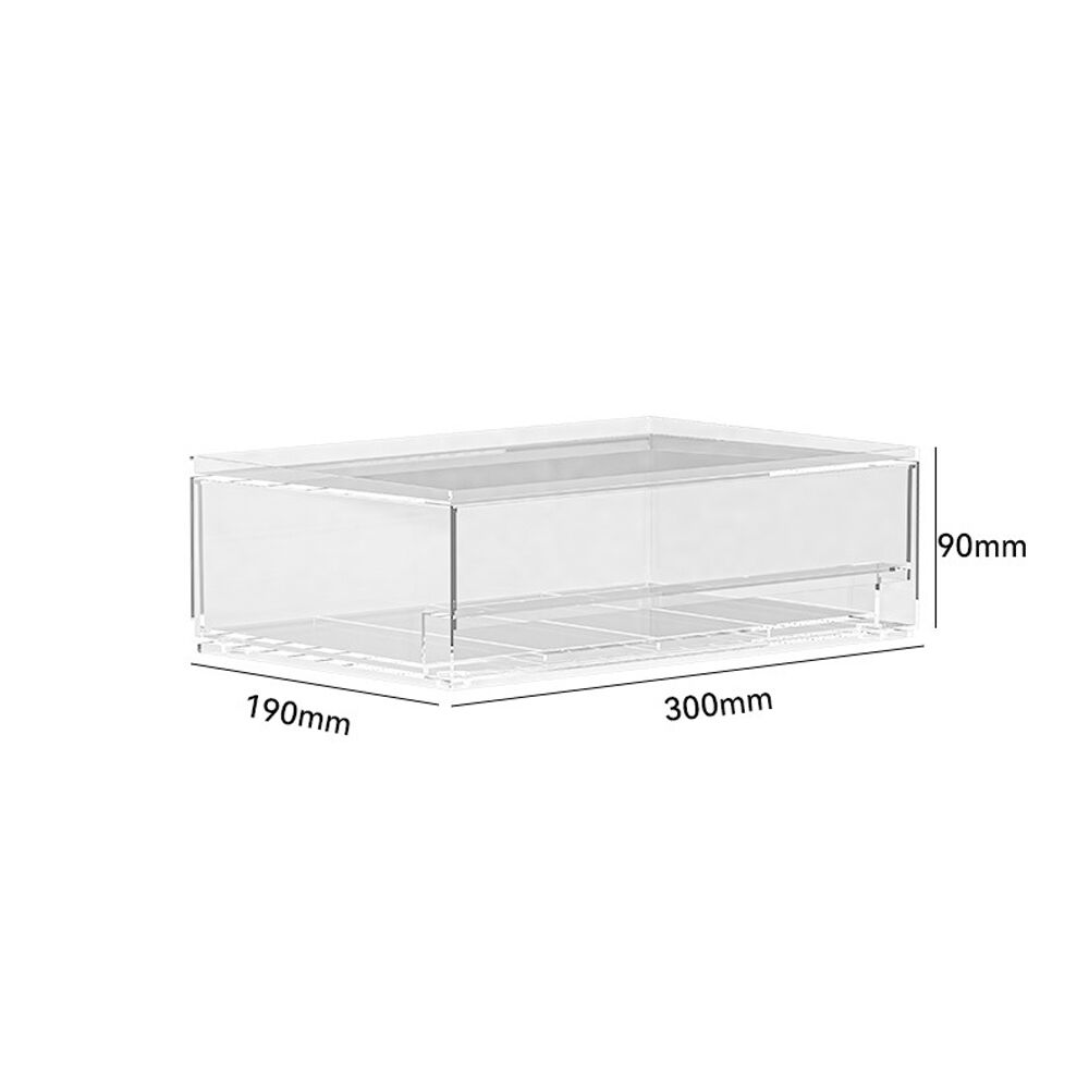 Serves as a compact display and storage tool for cosmetic stores. The transparent material clearly showcases lipsticks and cosmetics, with the drawer design integrating storage and display. Stackable to create layered display effects, it is suitable for storing and displaying cosmetic samples and best-selling items, improving store tidiness and display effects.