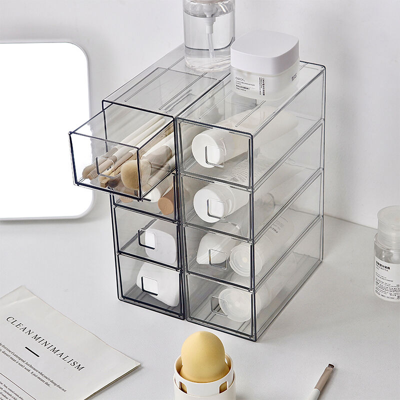 Tool-free and stackable design fits small spaces, storing skincare products, jewelry and stationery, making limited desktop space neat and improving quality of life.