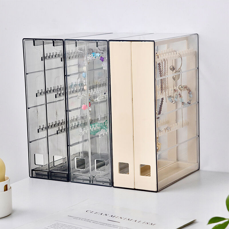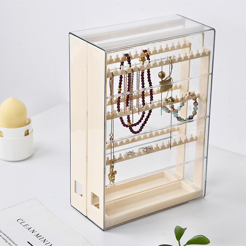 Crafted with premium high-transparency PET material, this storage box is tailor-made for various jewelry organization scenarios. The high-transparency PET panel boasts excellent light transmittance, allowing earrings, necklaces, rings and other accessories to be clearly visible at a glance—no need to open the lid for searching. Featuring inherent scratch-resistant and yellowing-resistant properties, the PET material resists scratches during daily use and maintains its crystal-clear appearance over time. Combined with a sealed dust-proof structure, it effectively isolates dust and moisture, preventing silver jewelry from tarnishing and pearls from losing their luster, thus keeping every piece of jewelry shiny and intact for long. Its innovative scientific structure, consisting of multi-layer hangers and divided compartments, enables flexible storage of different types of jewelry such as long necklaces, stud earrings, drop earrings, rings and brooches. The dual-mode design of hanging and displaying prevents jewelry from tangling and abrasion, ensuring each item has its own dedicated "home".